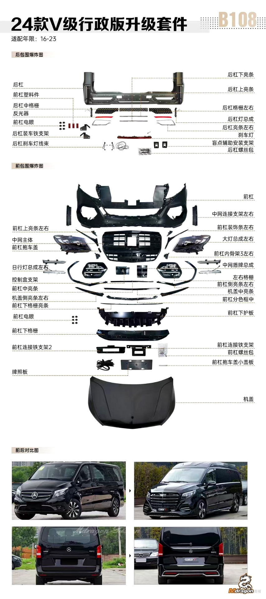 9. Mdragon V class/ Vito Luxury V300 2024 model Body Kits($5790)