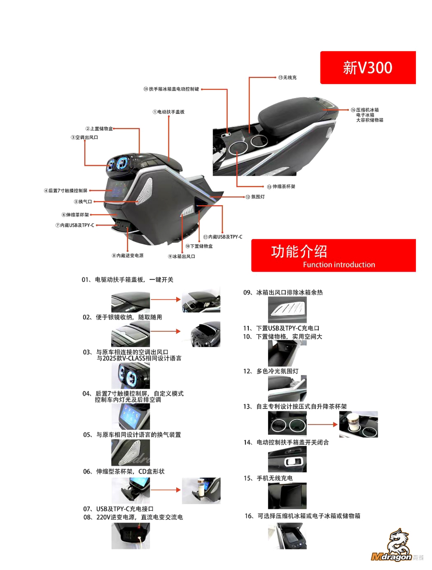 9. Mdragon V Class Luxury Armrest Box Assembly 3